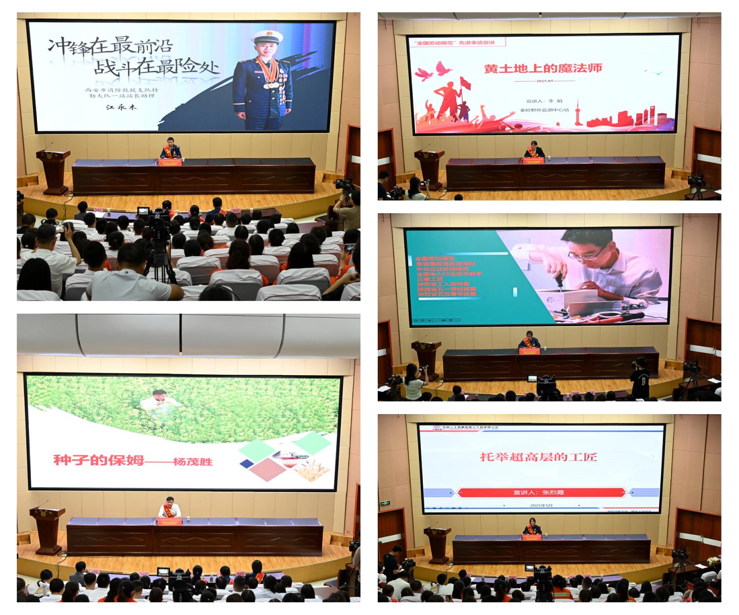 商州區(qū)和市直部分單位一線職工、農(nóng)民工、新業(yè)態(tài)人員代表,商洛學(xué)院相關(guān)職能部門負(fù)責(zé)人、師生代表共400余人共同聆聽勞模故事,汲取奮進(jìn)力量。