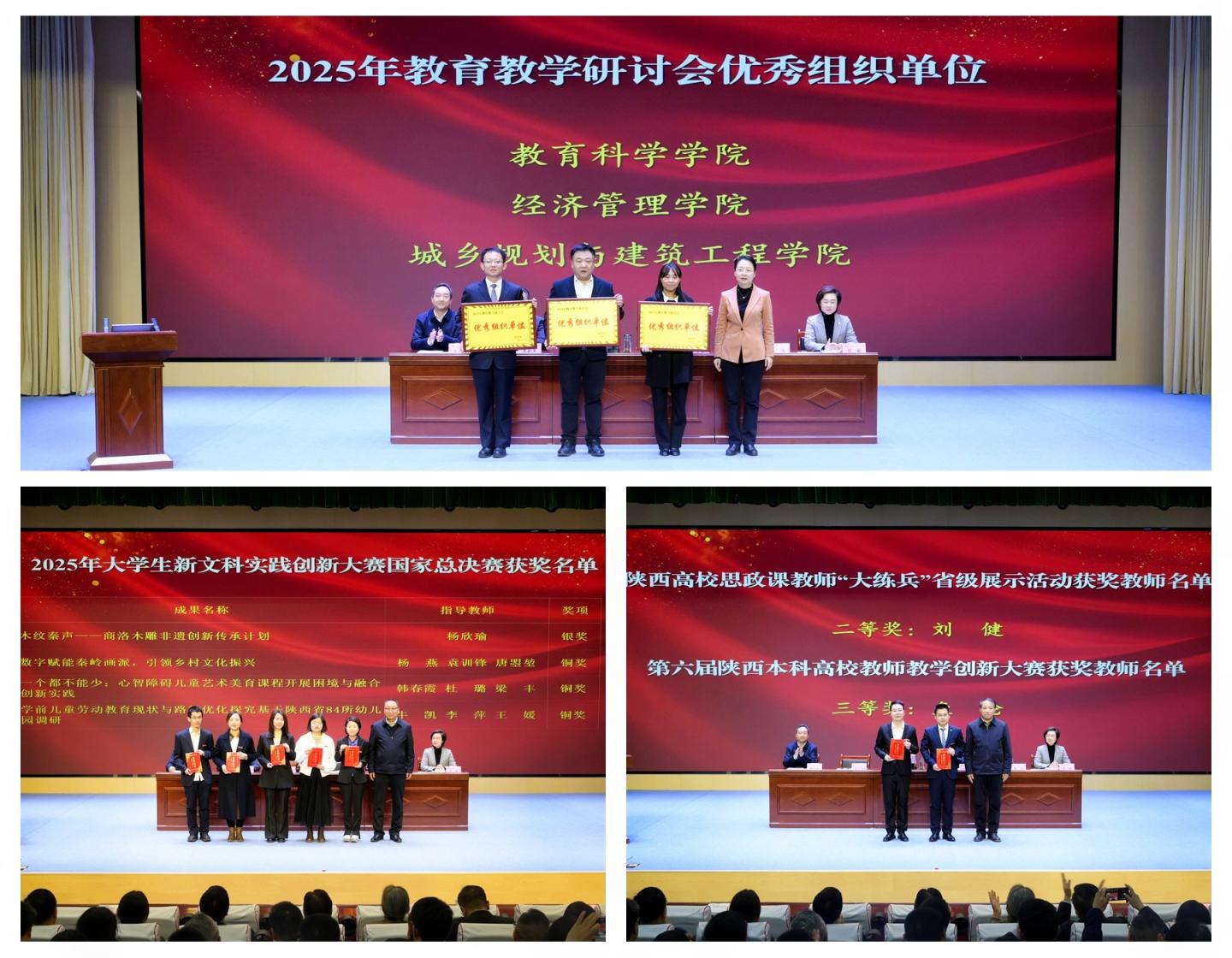 大會表彰了2025年教育教學(xué)研討會優(yōu)秀論文獎獲獎教師、第七屆教師教學(xué)創(chuàng)新大賽獲獎教師、2025年校級教育教學(xué)成果獎獲獎教師、2025年省級優(yōu)秀本科教學(xué)案例獎獲獎教師、陜西高校思政課教師“大練兵”省級展示活動獲獎教師、第六屆陜西本科高校教師教學(xué)創(chuàng)新大賽獲獎教師、2025年大學(xué)生新文科實踐創(chuàng)新大賽國家總決賽獲獎項目指導(dǎo)教師及教學(xué)研討會優(yōu)秀組織單位。