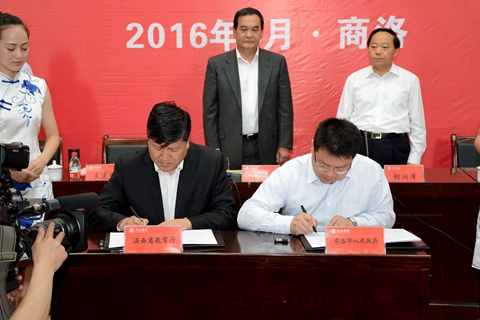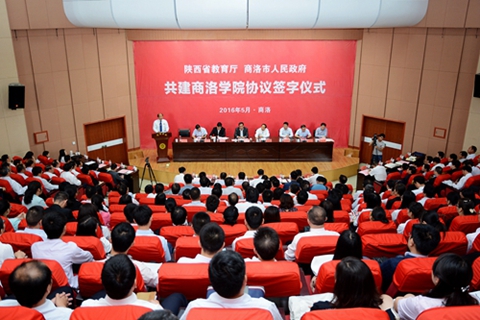 陜西省委高教工委辦公室,省教育廳高教處、財務(wù)處、發(fā)展規(guī)劃處、基教一處等有關(guān)處室負責(zé)人,商洛市發(fā)改委、規(guī)劃局、教育局、科技局、工信局、財政局、國土資源局、建設(shè)局、衛(wèi)計局、商丹園區(qū)管委會等政府部門、單位負責(zé)人,根植地方行動計劃合作單位代表,師生代表等參加簽字儀式。