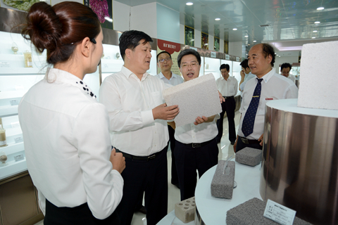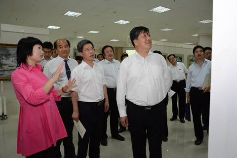 在紅色文化資料館,看到我校整理、收藏的1萬余冊革命歷史文獻和實物資料,王建利、王華對我校挖掘商洛土地革命戰(zhàn)爭史、弘揚紅色文化方面的工作成果表示贊賞。在商洛文化暨賈平凹研究中心,王建利、王華與我校教師陳敏、程華親切交談,了解他們在賈平凹研究及小小說創(chuàng)作中的最新成果。在藝術展廳,兩位領導饒有興致地欣賞了秦嶺畫派作品及美術學專業(yè)學生的畢業(yè)創(chuàng)作。在生物學院實驗室,王建利、王華現(xiàn)場觀看了我校大學生創(chuàng)新創(chuàng)業(yè)項目——哈尼烘焙團隊學生制作面包的過程。在尾礦資源綜合利用重點實驗室,兩位領導詳細了解了尾礦資源再利用流程、產品、成本和效益等情況。在秦嶺植物標本陳列室,王建利與我校教師于浩世親切交流,盛贊他培育的小麥新品種為農業(yè)增產、農民增收做出的積極貢獻。
