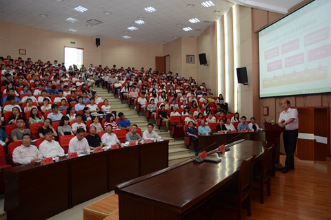 劉建林以“商洛學(xué)院的昨天 今天 明天”為題,從“四十年勵(lì)精圖治、升本十年風(fēng)雨兼程、2015年厚積薄發(fā)”三個(gè)方面全面總結(jié)回顧了我校建校40年來取得的成就,并介紹了學(xué)校下一步工作思路和目標(biāo)、發(fā)展路徑選擇與措施?!吧搪鍖W(xué)院是鑲嵌于商洛大地上的一張金色名片,是飄揚(yáng)在丹江河畔上空的一道靚麗的風(fēng)景線,她支持著商洛城市社會(huì)品質(zhì)的提升,支撐著商洛區(qū)域社會(huì)經(jīng)濟(jì)文化的可持續(xù)發(fā)展”、“商洛學(xué)院是我們的共同家園,是我們每個(gè)人發(fā)展的平臺和依靠”——這些鏗鏘有力的話語贏得了在座學(xué)生的高度認(rèn)同,現(xiàn)場不斷爆發(fā)出熱烈的掌聲。