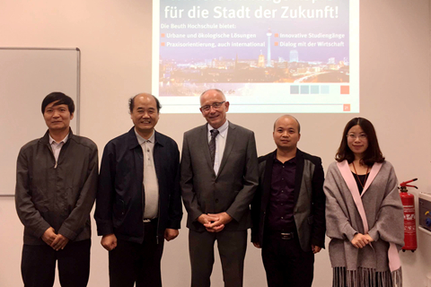 在德國柏林應(yīng)用科技大學(xué),劉建林一行先后前往兩個分校區(qū),分別與Hoffjann教授和Kammasch教授在應(yīng)用型人才培養(yǎng)過程中的教學(xué)質(zhì)量管理的模式、管理質(zhì)量管理的模式、工程教育及其教學(xué)法、應(yīng)用型教師的培養(yǎng)等方面開展了深入交流和探討,了解了《博洛尼亞宣言》后歐洲高等教育體系的改革和建設(shè)成果。