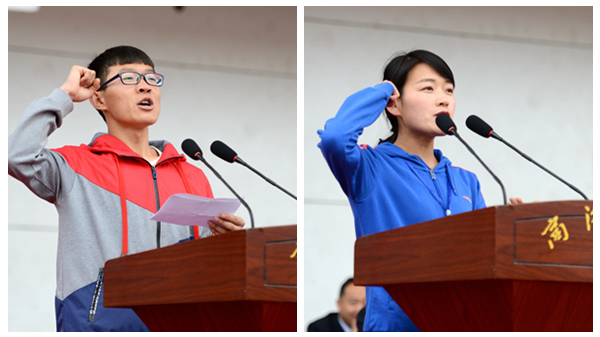 運(yùn)動(dòng)員代表吳飛、裁判員代表張馨嬌分別代表全體運(yùn)動(dòng)員、裁判員宣誓。