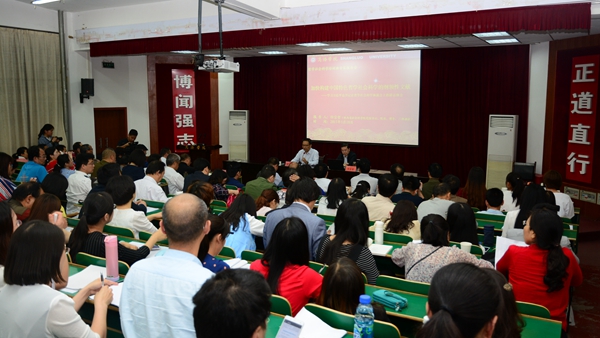 任宗哲在報告中從“深刻領會習近平總書記重要講話精神要義,準確把握面臨的新形勢新問題;堅持以馬克思主義為指導,構建中國特色哲學社會科學;加強黨的領導,高度重視對哲學社會科學研究的研究,為繁榮中國特色哲學社會科學履職盡責”三個方面,闡釋了習近平總書記重要講話的重大意義,提出了構建中國特色哲學社會科學的思路,分析了哲學社會科學相比自然科學所具有的學科屬性和特性,并對加強哲學社會科學研究本身提出了自己的思考。