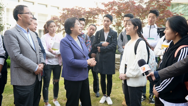 ——團(tuán)長(zhǎng)深度解讀,實(shí)現(xiàn)在職教師全覆蓋。11月13日至14日,王思懷分別為全校機(jī)關(guān)、教學(xué)院部教職員工作了題為《十九大的新亮點(diǎn)》的宣講報(bào)告。他圍繞10個(gè)關(guān)鍵詞“新時(shí)代、新矛盾、新使命、新方略、新目標(biāo)、新思想、新提法、新領(lǐng)袖、新背景、新未來”,對(duì)黨的十九大報(bào)告進(jìn)行了深入解讀,深刻闡述了中國(guó)共產(chǎn)黨人的“初心”與“使命”,并詳細(xì)講述了十九大確定的發(fā)展新方略以及在全面建成小康社會(huì)基礎(chǔ)上實(shí)現(xiàn)建成社會(huì)主義現(xiàn)代化強(qiáng)國(guó)的新目標(biāo)。鼓勵(lì)全校教師砥礪奮進(jìn),為學(xué)校和國(guó)家發(fā)展貢獻(xiàn)力量。