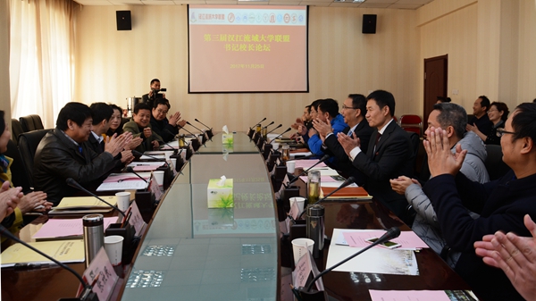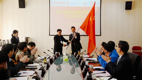 在書記校長(zhǎng)論壇上,我校作為2018年漢江流域聯(lián)盟輪值理事長(zhǎng)單位接受2017年漢江流域聯(lián)盟輪值理事長(zhǎng)單位、南陽(yáng)師范學(xué)院黨委書記黃榮杰授旗,副校長(zhǎng)劉勇接旗;表決通過了湖北汽車工業(yè)學(xué)院作為2019年輪值理事長(zhǎng)單位并成立新的秘書處,負(fù)責(zé)盟內(nèi)日常工作的開展。聯(lián)盟高校的書記校長(zhǎng)以“深化合作,開拓創(chuàng)新,促進(jìn)漢江流域大學(xué)建設(shè)”為主題,圍繞“雙一流”建設(shè)與創(chuàng)新發(fā)展、應(yīng)用型人才培養(yǎng)與創(chuàng)新發(fā)展、師資隊(duì)伍建設(shè)與創(chuàng)新發(fā)展、高校治理體系法治化與創(chuàng)新發(fā)展、國(guó)際合作交流與創(chuàng)新發(fā)展、大學(xué)文化建設(shè)與創(chuàng)新發(fā)展、高校黨的建設(shè)與創(chuàng)新發(fā)展等議題分別作了主題發(fā)言。他們共同表示,聯(lián)盟高校要以黨的十九大精神為指導(dǎo),立足國(guó)家戰(zhàn)略和區(qū)域規(guī)劃,瞄準(zhǔn)區(qū)域經(jīng)濟(jì)社會(huì)發(fā)展需要,加強(qiáng)相互合作與發(fā)展,創(chuàng)新協(xié)同發(fā)展體制機(jī)制,實(shí)現(xiàn)優(yōu)勢(shì)互補(bǔ)、整體提升,開創(chuàng)互利合作共贏新局面。