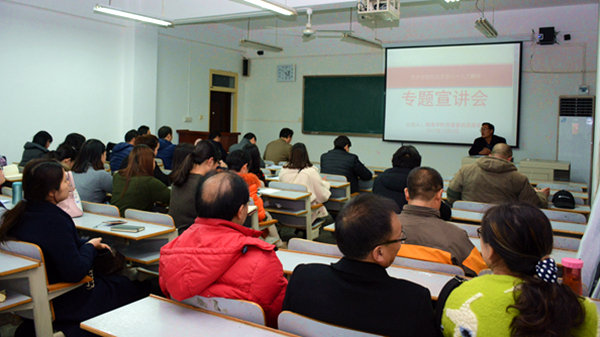 12月5日晚,校黨委委員高榮發(fā)到藝術學院宣講黨的十九大精神。宣講會由藝術學院黨總支書記黃新春主持。