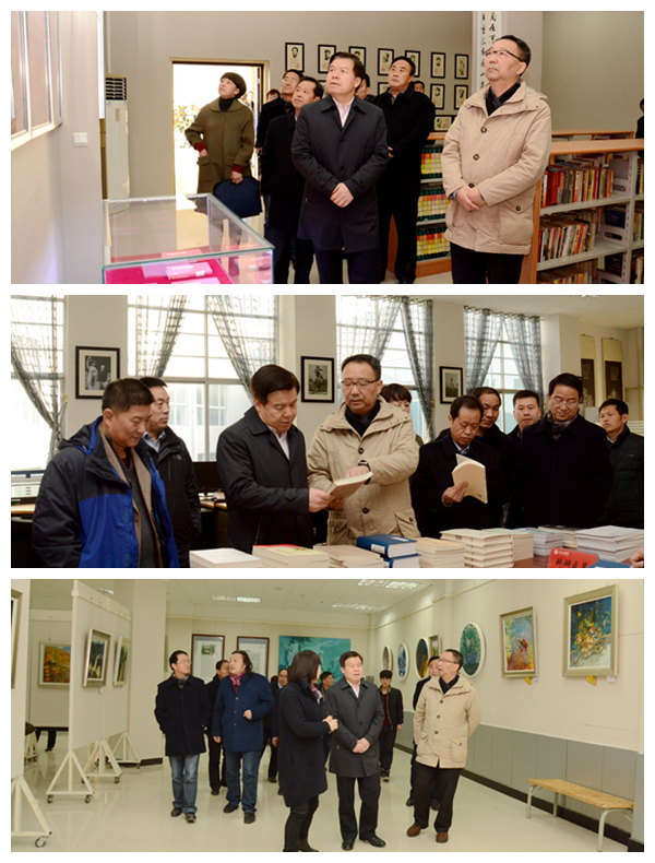 簽字儀式結束后,張崗嶺一行在龍治剛、范新會的陪同下,參觀考察了我校校園環(huán)境及特色展廳。