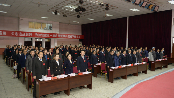 報(bào)告號(hào)召全體黨員和師生員工緊密團(tuán)結(jié)起來(lái),高舉中國(guó)特色社會(huì)主義偉大旗幟,以習(xí)近平新時(shí)代中國(guó)特色社會(huì)主義思想為指引,在省委省政府的堅(jiān)強(qiáng)領(lǐng)導(dǎo)下,在市委市政府的大力支持下,堅(jiān)定信心不動(dòng)搖,咬定目標(biāo)不放松,始終保持昂揚(yáng)向上的斗志、務(wù)實(shí)奮進(jìn)的作風(fēng),開(kāi)拓進(jìn)取、攻堅(jiān)克難,為把我校早日建成一流應(yīng)用型本科院校不懈奮斗!