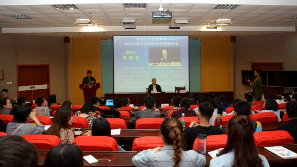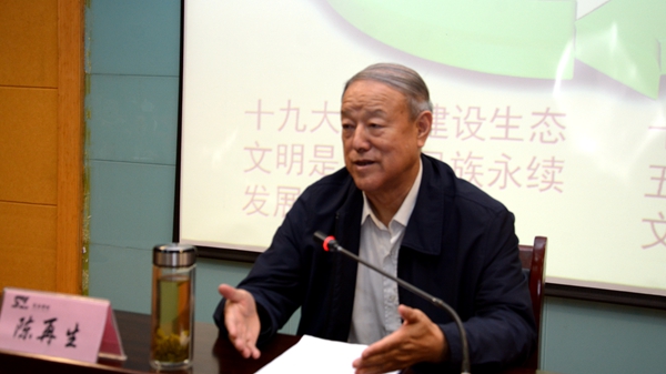 陳再生從建設(shè)新時代生態(tài)文明,要認真學習深刻領(lǐng)會習近平關(guān)于中國特色生態(tài)文明建設(shè)的重要戰(zhàn)略思想;要明確“美麗中國”是社會文明形態(tài)演變進步的更高要求;要明確生態(tài)文明的本質(zhì)內(nèi)涵和要求;要明確認識生態(tài)文明建設(shè)的重大意義;要明確堅持綠色發(fā)展是發(fā)展觀的一場深刻革命;要把生態(tài)建設(shè)融入經(jīng)濟、政治、文化、社會建設(shè)各方面和全過程;要堅持以人民為中心,向人民提供公共生態(tài)產(chǎn)品;要不斷完善制度機制和政策法律;要積極參與國際合作,共建全球良好的生態(tài)環(huán)境九個方面為師生做了一場深刻而生動的報告。他在報告中指出,新時代生態(tài)文明建設(shè)的重點任務(wù)是:推動形成綠色發(fā)展方式、切實解決突出環(huán)境問題、加大生態(tài)系統(tǒng)保護力度、深化生態(tài)環(huán)保體制機制改革。他強調(diào),我們要積極貫徹落實習近平總書記在黨的十九大報告中提出的“加快生態(tài)文明體制改革、建設(shè)美麗中國”的重要精神,從身邊的小事做起,堅持綠色發(fā)展道路,堅持人與自然和諧相處。