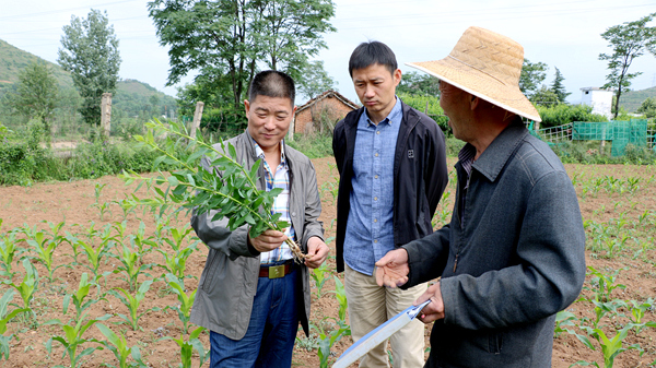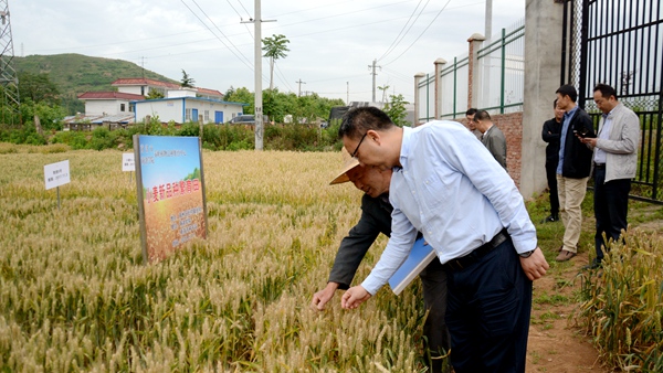 在張村校區(qū)試驗站,小麥顆粒飽滿、玉米長勢喜人、桔梗郁郁蔥蔥,一片生機勃勃的景象。校領(lǐng)導(dǎo)逐一仔細察看了小麥、玉米和桔梗的長勢,詳細詢問了小麥和中藥材新品種選育情況,聽取了我校小麥育種專家于浩世的匯報。校領(lǐng)導(dǎo)們指出,選育豐產(chǎn)抗逆性優(yōu)良的作物新品種是我校服務(wù)地方發(fā)展的重要工作,希望生物學(xué)院進一步加大對育種工作的支持力度,加強團隊建設(shè),力爭多出成果。
