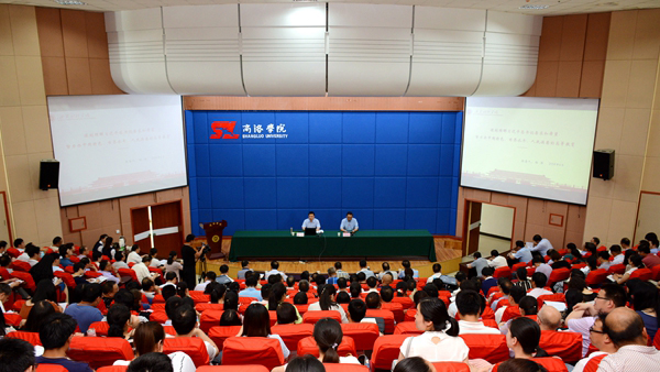 6月13日,按照陜西省委高教工委統(tǒng)一部署,我校舉辦“學(xué)習(xí)新思想 千萬師生同上一堂課”活動,陜西高校“習(xí)近平總書記重要講話精神講師團(tuán)”成員、西安財經(jīng)學(xué)院黨委書記楊濤和陜西科技大學(xué)團(tuán)委副書記李鵬分別為我校師生作了專題報告。校領(lǐng)導(dǎo)龍治剛、范新會、王思懷、彭虎軍、劉勇,黨委委員王新軍、李超、楊存典、張向東,科級以上干部、全體教師及學(xué)生代表共1000余人參加活動。校黨委書記龍治剛、黨委副書記彭虎軍分別主持師生報告會。