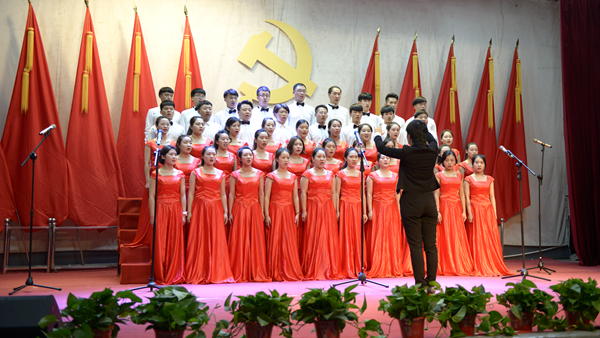 大會在全體大合唱《沒有共產(chǎn)黨就沒有新中國》的歌聲中圓滿落幕。