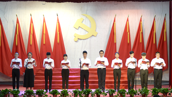 教職工黨員代表集體誦讀了《梁家河》中的《修身》,學(xué)生黨員代表集體誦讀了《走進(jìn)新時代》篇章。