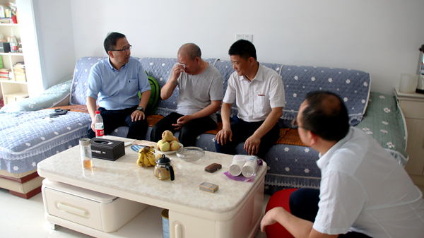 在黨委委員、組織部部長郭瑾的陪同下,龍治剛、范新會先后來到患病困難黨員郭建文的工作崗位和何志奇的家中,仔細(xì)詢問他們的身體情況、治療狀況,關(guān)心了解他們的工作現(xiàn)狀和生活起居,鼓勵他們戰(zhàn)勝疾病,保持積極樂觀的心態(tài),勇敢面對生活,并表示會叮囑學(xué)校相關(guān)部門幫助他們解決實(shí)際困難,盡力關(guān)心好、照顧好他們的生活和工作。