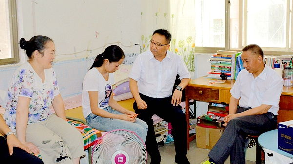 8月3日,黨委書記龍治剛、紀委書記王思懷看望慰問我校榮獲“中國好人”的2015級學(xué)生唐偉麗,并送上慰問品和慰問金。校黨委辦公室、宣傳部、學(xué)生處、團委、生物學(xué)院負責人及相關(guān)人員參加了此次慰問。