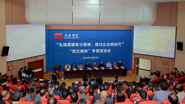 10月10日,由省委高教工委、省科協(xié)主辦,我校承辦的 “弘揚(yáng)愛國奮斗精神 建功立業(yè)新時(shí)代”“西遷精神”專題報(bào)告會(huì)在我校舉辦。陜西省科協(xié)副主席韓開興,商洛市委常委、市政府副市長(zhǎng)張禮進(jìn),我校黨委書記龍治剛、校長(zhǎng)范新會(huì)、紀(jì)委書記王思懷、副校長(zhǎng)魏書堂、黨委副書記彭虎軍、副校長(zhǎng)劉寶盈、副校長(zhǎng)劉勇出席報(bào)告會(huì)。報(bào)告會(huì)由市科協(xié)黨組書記、主席董紅梅主持。西遷老同志潘季教授、西遷子女金沙曼教授、青年教師張磊教授從親歷者、見證者、傳承者三個(gè)不同角度,講述西遷過往,暢談西遷傳承,共訴西遷情懷。