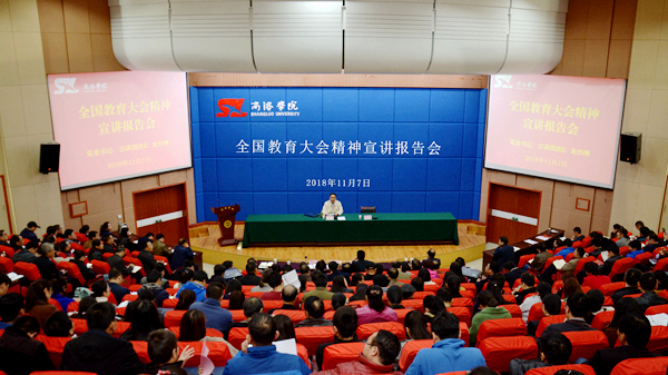 龍治剛強(qiáng)調(diào),要結(jié)合學(xué)校實(shí)際,扎實(shí)推進(jìn)全國教育大會(huì)精神在我校落地生根、開花結(jié)果,要把落實(shí)全國教育大會(huì)精神同學(xué)習(xí)黨的十八大以來習(xí)近平總書記關(guān)于教育的重要論述,特別是對陜西教育的重要講話、系列回信、賀信精神結(jié)合起來,進(jìn)一步提高政治站位,強(qiáng)化責(zé)任擔(dān)當(dāng),增強(qiáng)推進(jìn)我校教育改革發(fā)展的責(zé)任感、使命感和緊迫感,在堅(jiān)持社會(huì)主義辦學(xué)方向上落細(xì)落小、在立德樹人上落細(xì)落小、在構(gòu)筑高水平人才培養(yǎng)體系上落細(xì)落小、在“四個(gè)一流”建設(shè)上落細(xì)落小、在建設(shè)高水平教師隊(duì)伍上落細(xì)落小、在推動(dòng)學(xué)校深化改革上落細(xì)落小、在服務(wù)經(jīng)濟(jì)社會(huì)發(fā)展上落細(xì)落小,以全國教育大會(huì)精神武裝頭腦、指導(dǎo)實(shí)踐、推動(dòng)工作,以更加優(yōu)異的成績書寫商洛學(xué)院教育事業(yè)的“奮進(jìn)之筆”。