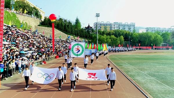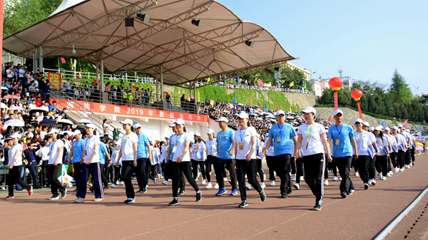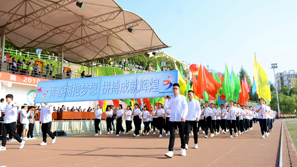 4月18日上午,風晴日朗、天高云淡,體育場上彩旗招展、熱鬧非凡,我校2019年田徑運動會正式開幕。黨委書記龍治剛、校長范新會、紀委書記王思懷、副校長魏書堂、黨委副書記彭虎軍、副校長劉寶盈,各二級教學單位黨政負責人和各職能部門負責人出席開幕式,與全校師生共同觀看了開幕式文體表演。