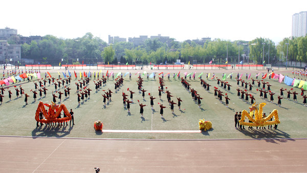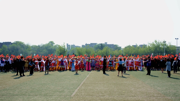 開幕式文體表演亮點頗多,精彩紛呈。我校航模隊與商洛市航空運動協(xié)會夢想飛行表演隊的航模表演率先開場,航模飛機在激昂的音樂聲中搏擊長空,升降翻轉(zhuǎn),劃出一道道優(yōu)美的弧線。建工學院學生以紅扇跳勁舞,龍虎相隨,青春激情,以歡快的舞姿、動感的隊形充分展現(xiàn)青春活力。化材學院學生用熱情歡快的啦啦操和“1949”“70”的隊形,表達對祖國深深的熱愛與誠摯的祝福。數(shù)計學院學生以整齊優(yōu)雅的華爾茲雙人舞,展現(xiàn)學子儒雅優(yōu)秀的一面,用“SLXY"圖樣的隊形表達自己對學校美好明天的祝福。藝術(shù)學院學生身著藏族、傣族、蒙古族、佤族、維吾爾族,朝鮮族、苗族等多個民族服裝,結(jié)合現(xiàn)代舞蹈動作,在愛我中華的樂曲中展現(xiàn)中華民族多元文化風采和我校學子的勃勃生機。