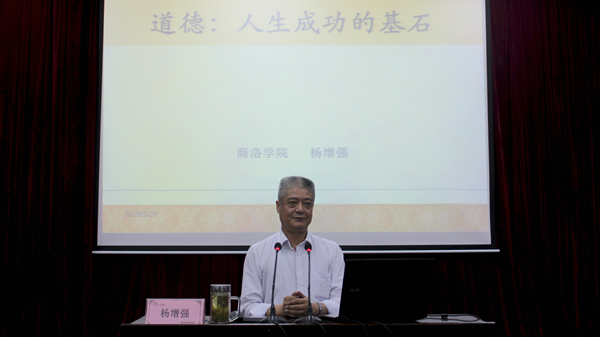 本期道德講堂由唱道德歌曲、誦道德經(jīng)典、學(xué)道德模范、聽道德報(bào)告四個環(huán)節(jié)組成?;顒釉谟茡P(yáng)的《公民道德歌》中拉開帷幕,隨后,在健康管理學(xué)院教師李夢姣的帶領(lǐng)下,社會1801班全體學(xué)生誦讀了《弟子規(guī)·信》中的片段,深情詮釋了道德經(jīng)典的魅力,贏得了陣陣掌聲。接著,現(xiàn)場人員共同觀看了陜西省第五屆道德模范、孝老愛親類“中國好人”唐偉麗的感人事跡短片?;顒舆€邀請我校圖書館館長楊增強(qiáng)教授以“道德:人生成功的基石”為題作了專題報(bào)告,報(bào)告指出,當(dāng)代大學(xué)生應(yīng)牢固樹立社會主義核心價(jià)值觀,堅(jiān)持誠實(shí)守信的人生信條,把誠信融入到學(xué)習(xí)生活的方方面面。