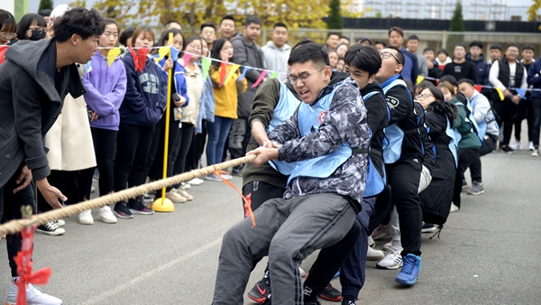 11月20日,由我校體育教學研究部承辦的2019年拔河比賽在校北院籃球場舉行。教務處、學生處、團委、體育教學研究等部門相關負責人參加了活動并為獲獎隊伍頒獎,各二級學院代表隊參加了比賽。