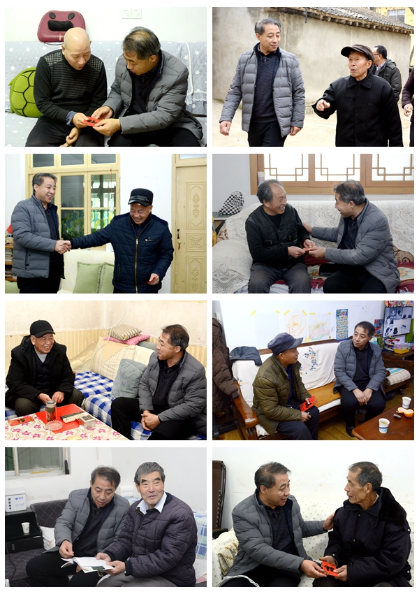 在黨委辦公室負(fù)責(zé)人等人員的陪同下,1月16日、1月17日,黨委副書記彭虎軍分別走訪慰問了商洛學(xué)院原副校長魏書堂和黨委原副書記左曉民,與他們親切話家常,傾聽他們的心聲,代表學(xué)校感謝他們對學(xué)校工作的關(guān)心和支持。1月10日,副校長劉寶盈赴家中看望了原商洛師專副校長劉文斌,在交談中重溫學(xué)校建校四十多年的發(fā)展歷史,祝愿他新年快樂、闔家幸福。1月13日,副校長劉勇登門看望了原商洛師專副校長郭敏厚,關(guān)切詢問他的生活情況和身體狀況,希望他保重身體、安享幸福生活。