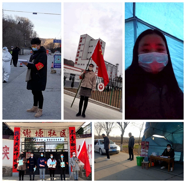 截至目前,馬克思主義學(xué)院有30名師生黨員參加了“臨時(shí)黨支部”和黨員先鋒模范隊(duì),還有7名普通學(xué)生以志愿者的身份參與到當(dāng)?shù)匾咔榉揽毓ぷ髦小熒揽匾咔榈淖阚E遍布山東省泰安市,廣西壯族自治區(qū),陜西省西安市、咸陽市、延安市、漢中市、渭南市、商洛市、周至縣、黃陵縣等地。寒風(fēng)中,他們不畏艱辛、不怕兇險(xiǎn),或耐心細(xì)致地為進(jìn)出村口的人員測量體溫,或認(rèn)真負(fù)責(zé)地對(duì)出入車輛進(jìn)行登記,或一絲不茍地上門排查,或滿腔熱情地開展防疫宣傳和病毒消殺工作。