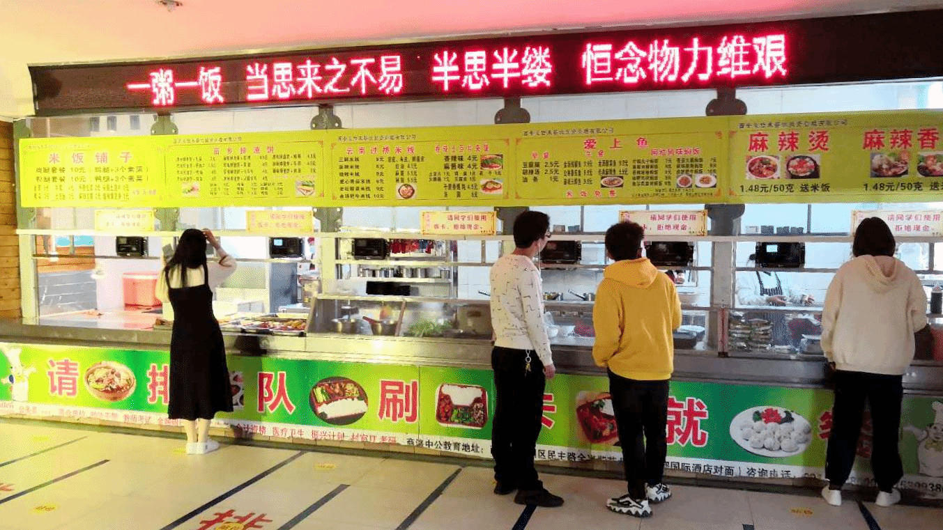 ——狠抓食堂精細(xì)化管理,推行“小份飯”“半份菜”銷售和“免費(fèi)米飯”“免費(fèi)湯”自助添加。開展員工節(jié)約糧食反對浪費(fèi)培訓(xùn)教育,提高員工節(jié)約光榮、浪費(fèi)可恥的自覺意識,形成全員參與、共同監(jiān)督的氛圍;加強(qiáng)從原材料采購、儲存、加工、銷售各環(huán)節(jié)的監(jiān)督檢查,對浪費(fèi)現(xiàn)象進(jìn)行批評教育和處罰通報(bào);加強(qiáng)員工操作規(guī)范管理,提高原材料利用率,提升服務(wù)水平;全面加強(qiáng)廚師的烹飪技能培訓(xùn),不斷提升廚師的餐飲服務(wù)技能,提高菜品質(zhì)量,豐富菜品品種,滿足師生多元化的飲食需求和口味特點(diǎn),減少師生就餐過程中因菜品質(zhì)量和口味而產(chǎn)生的浪費(fèi)行為。根據(jù)師生就餐規(guī)律合理安排出菜時(shí)間和出菜量,既保證菜品的口感和色澤,又減少飯菜浪費(fèi)。要求食堂前臺售飯時(shí)及時(shí)提醒師生合理消費(fèi),按需點(diǎn)菜,避免浪費(fèi)。在學(xué)生食堂推行“小份飯”“半份菜”銷售活動(dòng),并在就餐區(qū)設(shè)置“免費(fèi)米飯”和“免費(fèi)湯”保溫自助添加設(shè)備,引導(dǎo)師生結(jié)合自身的飲食需求節(jié)約糧食,減少浪費(fèi)。