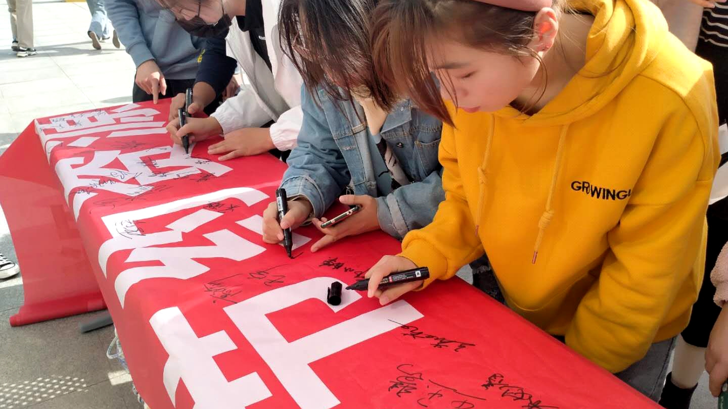 ——書勤儉之德,倡節(jié)約之風(fēng)。馬克思主義學(xué)院全體學(xué)生在8號教學(xué)樓前開展“浪費(fèi)過去式,節(jié)約進(jìn)行時(shí),美好將來時(shí)”主題簽名活動(dòng),同學(xué)們在橫幅上簽下自己的名字,承諾共同踐行習(xí)近平總書記重要批示精神,積極宣傳并帶動(dòng)身邊的朋友和家人合理消費(fèi)、勤儉節(jié)約,以自身為基點(diǎn),層層推動(dòng)、層層遞進(jìn),逐漸形成全社會(huì)范圍內(nèi)人人節(jié)約、處處節(jié)儉的良好風(fēng)尚。該院組織2019、2020級各班班委開展“厲行勤儉節(jié)約,反對鋪張浪費(fèi)”視頻會(huì)議,學(xué)習(xí)習(xí)近平總書記關(guān)于厲行節(jié)約、制止餐飲浪費(fèi)批示精神,教育引導(dǎo)學(xué)生將“厲行節(jié)約、反對浪費(fèi)”理念內(nèi)化于心,外化于行。各班還結(jié)合自身特點(diǎn)開展了形式多樣的主題班會(huì),通過觀看節(jié)約視頻、團(tuán)體討論、主題宣講等多種形式號召全體學(xué)生減少浪費(fèi)行為,為建設(shè)節(jié)約型校園貢獻(xiàn)自己的力量。