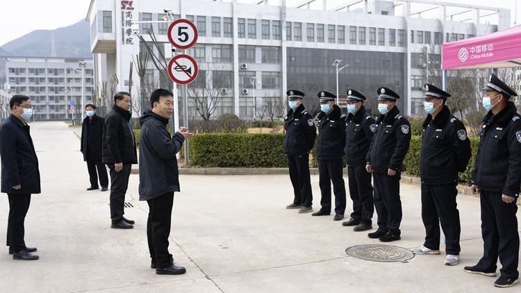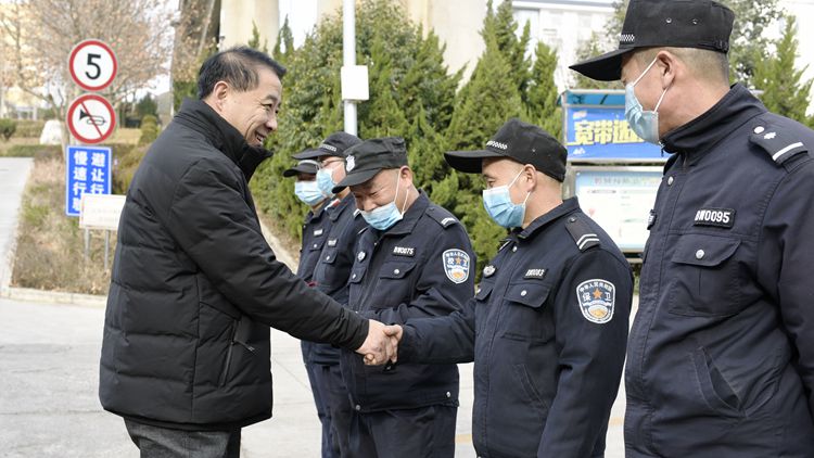 在黨委辦公室·院長(zhǎng)辦公室、保衛(wèi)處、后勤保障處和丹江校區(qū)管理處負(fù)責(zé)人的陪同下,彭虎軍一行先后前往北新街校區(qū)和丹江校區(qū)各處門(mén)衛(wèi)、教學(xué)樓、圖書(shū)館、公寓管理中心、動(dòng)力中心、體育場(chǎng)值班室和保衛(wèi)處監(jiān)控室等一線崗位,看望慰問(wèn)正在辛勤工作的值班人員。每到一處,彭虎軍、王新軍都與值班人員親切握手,代表學(xué)校黨政對(duì)春節(jié)期間依然奉獻(xiàn)在一線的工作人員表示衷心感謝,并親手送上節(jié)日慰問(wèn)品。彭虎軍要求全體值班人員一定要把疫情防控和安全穩(wěn)定放在首位,確保在校師生度過(guò)一個(gè)安全愉快的春節(jié)。
