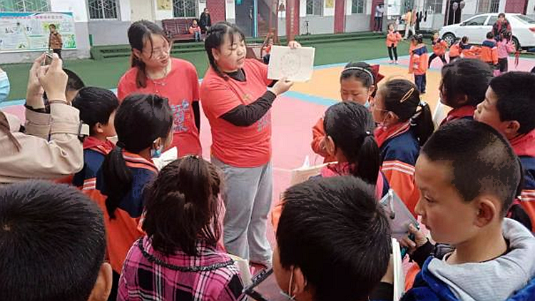 商州區(qū)牧戶關(guān)街道小學(xué)共有留守兒童100余名?;顒又校倚K囆g(shù)學(xué)院師生為小朋友們進(jìn)行了簡筆畫教學(xué)、繪畫指導(dǎo),并將一批圖畫本、鉛筆、橡皮等繪畫學(xué)習(xí)用品用具親自送到每位學(xué)生的手中,激發(fā)了他們對繪畫的興趣,為他們送去“鄉(xiāng)村愛心畫圃”的關(guān)懷與關(guān)愛。