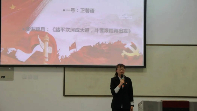比賽中,9名參賽通過精彩的演講重溫黨的光輝歷史、歌頌黨的豐功偉績,傳遞新時代青年對黨的忠誠和對未來的無限憧憬,他們富有感染力的演講深深打動了每一位評委和在場的觀眾,贏得了陣陣掌聲。期間,全體人員起立共唱《我和我的祖國》,用優(yōu)美的歌聲表達對祖國的無限熱愛之情,并重溫入黨誓詞,表達一心向黨、永遠跟黨走的堅定決心。