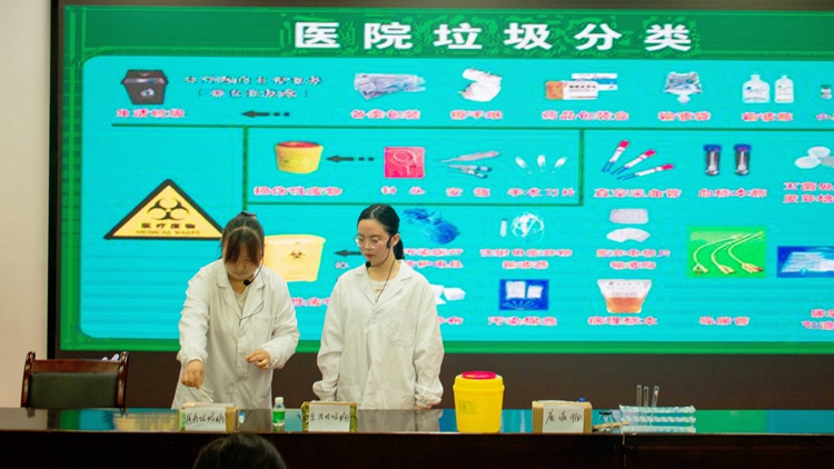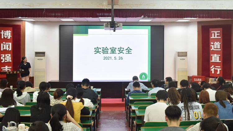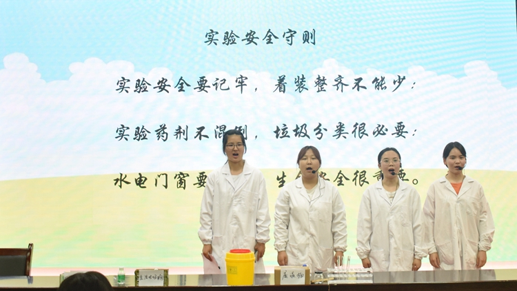 魏彩霞在報告中以“安全試驗,快樂探索”為主題,用生動的語言、鮮活的事例介紹了實驗室用水、用電、用氣、用火、試劑安全、廢液處理、人身防護等實驗室安全知識,強調了實驗室安全的重要性,提醒師生重視實驗室安全防范。 護理學1901班的蘇煥敏等4名同學表演了實驗室安全操作情景劇,通過錯誤操作與規(guī)范演示的對比,向師生們展示了實驗室安全操作中的注意事項,加深了大家對實驗安全的認知。