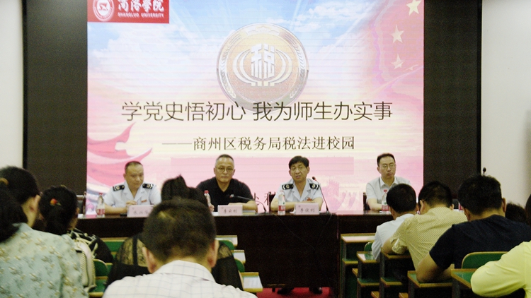 為深入開展“我為師生辦實(shí)事”實(shí)踐活動(dòng),向師生宣傳普及稅法知識(shí),提升教師稅收意識(shí),幫助畢業(yè)生了解創(chuàng)業(yè)就業(yè)扶持政策和各項(xiàng)減免稅收政策,6月1日下午 ,我校聯(lián)合商州區(qū)稅務(wù)局開展了“學(xué)黨史悟初心 我為師生辦實(shí)事”稅法宣傳進(jìn)校園活動(dòng)。商州區(qū)稅務(wù)局副局長李俊利,稅務(wù)專家朱興華向師生講解稅務(wù)知識(shí)并現(xiàn)場答疑解惑。校財(cái)務(wù)處處長李云剛、科技處副處長郭耀東,學(xué)生處相關(guān)負(fù)責(zé)人、各二級(jí)學(xué)院教師代表及畢業(yè)生代表100余人參加活動(dòng)。