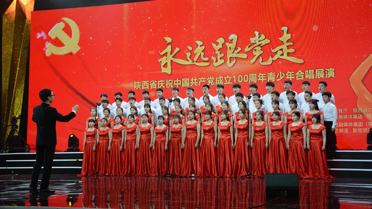 陜西省慶祝中國共產(chǎn)黨成立100周年“永遠(yuǎn)跟黨走”青少年合唱展演活動(dòng),由陜西省教育廳、陜西省廣播電視局、陜西廣電融媒體集團(tuán)聯(lián)合主辦,旨在堅(jiān)持以社會(huì)主義核心價(jià)值觀為引領(lǐng),堅(jiān)持根植中華優(yōu)秀傳統(tǒng)文化深厚土壤,堅(jiān)持以美育人、以美化人、以美培元,引導(dǎo)學(xué)生樹立共產(chǎn)主義遠(yuǎn)大理想和中國特色社會(huì)主義共同理想,增強(qiáng)學(xué)生的中國特色社會(huì)主義道路自信、理論自信、制度自信、文化自信,立志肩負(fù)起民族復(fù)興的時(shí)代重任,培養(yǎng)德智體美勞全面發(fā)展的社會(huì)主義建設(shè)者和接班人,以優(yōu)異成績向中國共產(chǎn)黨成立100周年獻(xiàn)禮?;顒?dòng)共收到全省120余所大、中、小學(xué)推薦報(bào)送的參演作品,其中高等學(xué)校約60所,11所高校獲得了陜西廣播電視臺(tái)現(xiàn)場錄制及展演,并將在陜西廣電融媒體集團(tuán)(陜西廣播電視臺(tái))公共文藝頻道進(jìn)行播出。