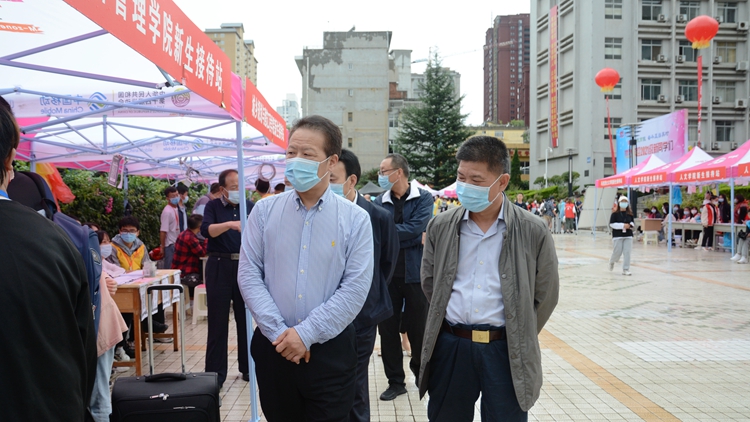 秋雨潤校園,熱情益彰顯。9月1日,我校第一批新生懷揣夢想來校報到,開啟一段新的人生征程。校黨委書記張志昌、校長范新會、黨委副書記彭虎軍、副校長劉寶盈在相關(guān)職能部門負責(zé)人的陪同下深入迎新現(xiàn)場,檢查指導(dǎo)迎新工作,看望慰問報到新生,并為家庭經(jīng)濟困難新生發(fā)放愛心禮包。