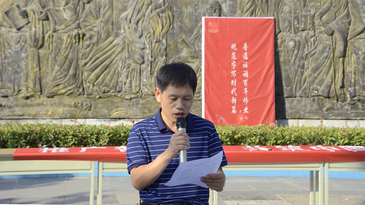 為貫徹落實(shí)全國語言文字會(huì)議精神,傳承弘揚(yáng)以語言文字為載體的中華優(yōu)秀文化,進(jìn)一步增強(qiáng)我校師生學(xué)習(xí)國家通用語言文字意識(shí),9月13日下午,人文學(xué)院舉辦了“普通話誦百年偉業(yè),規(guī)范字寫時(shí)代新篇”第24屆普通話推廣宣傳周活動(dòng)啟動(dòng)儀式。人文學(xué)院院長張文諾作動(dòng)員講話,教務(wù)處副處長高擴(kuò)昌宣布“推普周”活動(dòng)正式啟動(dòng)。