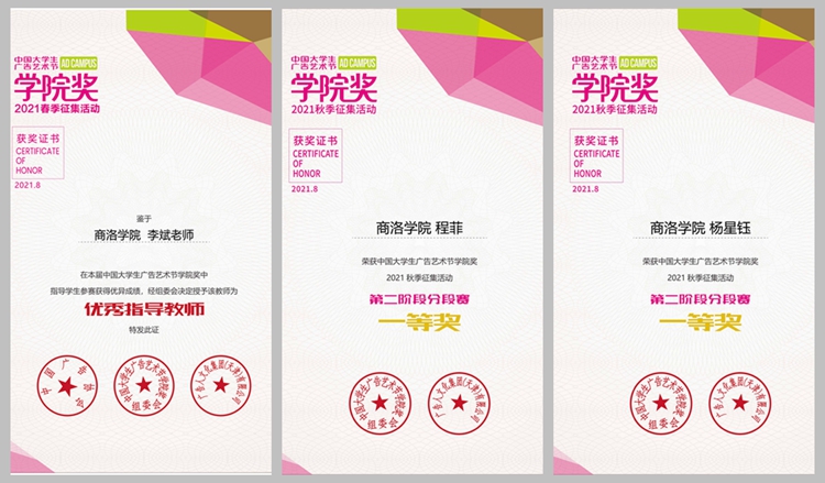 近日,2021年中國大學(xué)生廣告藝術(shù)節(jié)學(xué)院獎大賽秋季第二分段賽圓滿結(jié)束,我校獲得一等獎2項,二等獎3項,三等獎2項,優(yōu)秀獎1項,入圍獎16項,1名教師獲得“優(yōu)秀指導(dǎo)教師”,這是我校參加此類比賽首次獲獎。