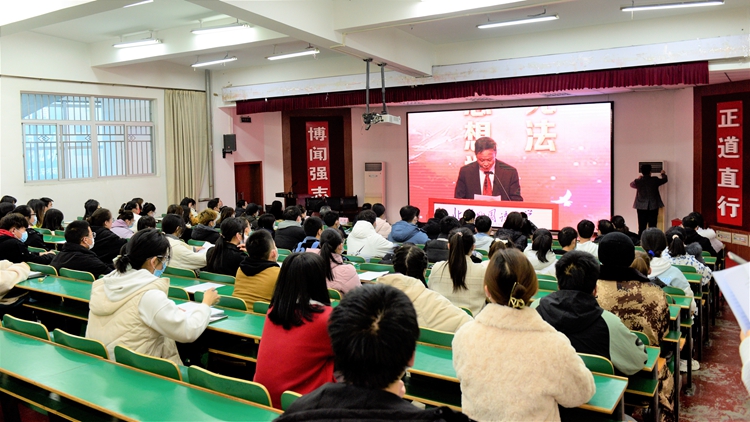 12月4日是“國家憲法日”。我校組織師生收看和同步參與國家憲法日“憲法晨讀”活動,引導師生自覺尊崇憲法、學習憲法、遵守憲法、維護憲法、運用憲法。校宣傳部、學工部、團委相關負責人,各二級學院師生代表共90余人參加活動。
