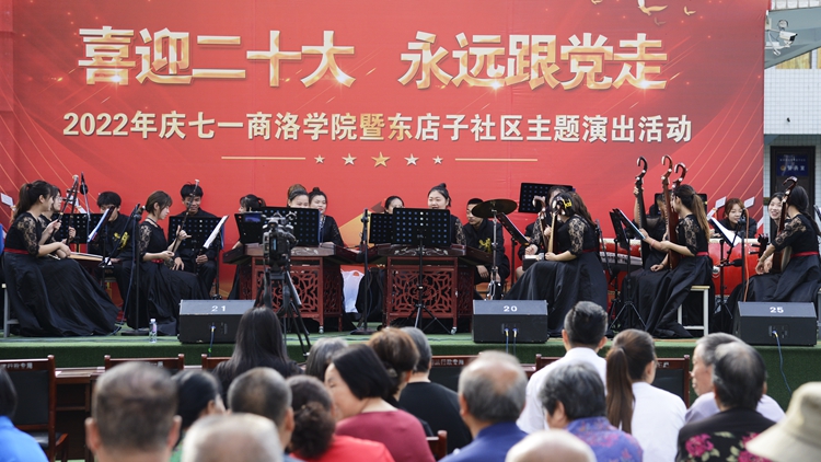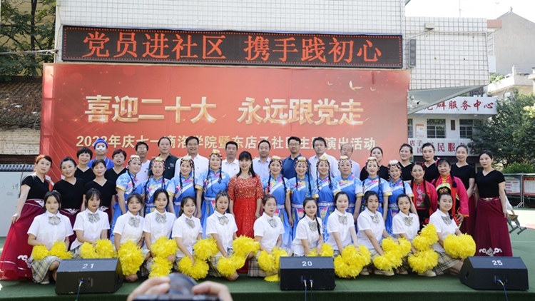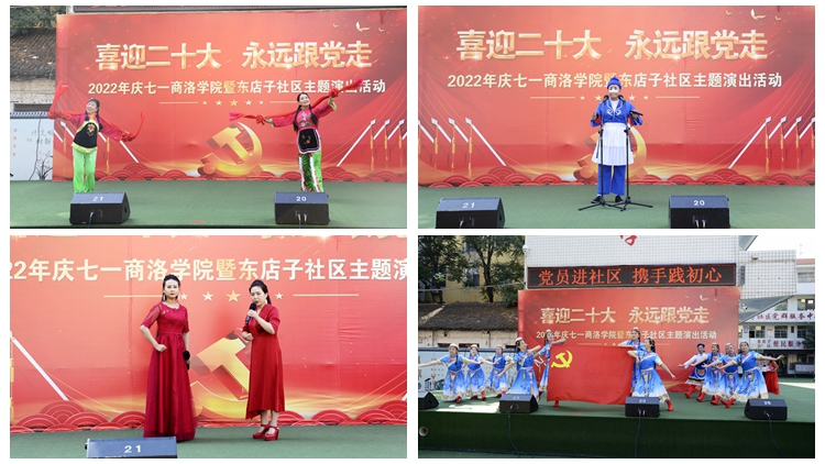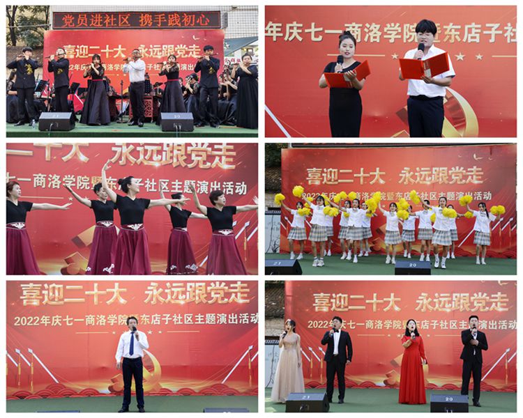 為進(jìn)一步深化黨組織和在職黨員到社區(qū)“雙報到”機(jī)制,深入開展迎接黨的二十大勝利召開“強(qiáng)國復(fù)興有我”群眾性主題宣傳教育活動,6月25日上午,由組織部、工會與東店子社區(qū)聯(lián)合舉辦的“喜迎二十大 永遠(yuǎn)跟黨走”主題演出活動在東店子小學(xué)順利舉行。東店子社區(qū)負(fù)責(zé)人,我校黨委組織部、宣傳部、保衛(wèi)部、工會、團(tuán)委、機(jī)關(guān)各黨總支和藝術(shù)學(xué)院、健康管理學(xué)院黨委負(fù)責(zé)人,商州區(qū)城關(guān)街道辦事處相關(guān)負(fù)責(zé)人及社區(qū)群眾一同觀看了表演。
