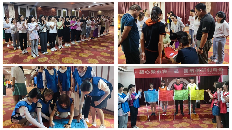 團建活動分為《破冰游戲》《團隊密碼》《挑戰(zhàn)平行線》《智勇闖三關》和《生命動力圈》五個環(huán)節(jié)。在活動中教職工們通力協(xié)作、積極探索、激發(fā)了個人潛能,增強自信和自制能力,培養(yǎng)了創(chuàng)造性思維,熔煉了團隊精神。