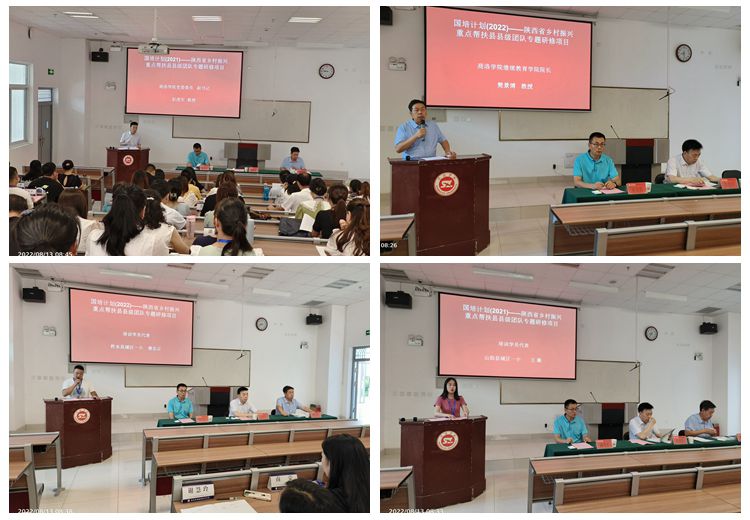 8月13日上午,由我校承辦的“國培計劃(2021和2022)”鄉(xiāng)村振興重點(diǎn)幫扶縣級團(tuán)隊(duì)專題研修項(xiàng)目開班典禮在我校舉行。黨委副書記彭虎軍出席開班典禮,繼續(xù)教育學(xué)院院長樊景博及培訓(xùn)管理團(tuán)隊(duì)相關(guān)人員參加開班典禮。來自商洛市山陽縣和柞水縣100余名教師培訓(xùn)團(tuán)隊(duì)成員參加此次培訓(xùn)。