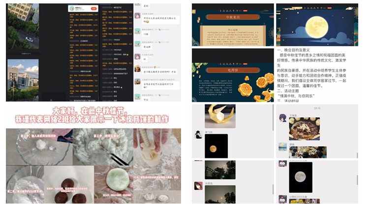 數(shù)計(jì)學(xué)院開展了線上猜燈謎、賞明月、講中秋傳統(tǒng)故事等活動。有的新生通過視頻等方式展示了自己動手制作月餅的全過程,學(xué)院教師通過VR帶領(lǐng)新生“云端逛校園”,向?qū)W生展示我校全貌。