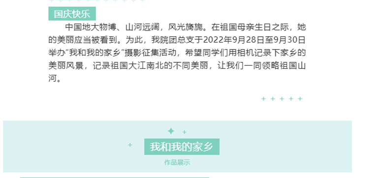 經(jīng)濟(jì)管理學(xué)院舉辦了“我和我的家鄉(xiāng)”作品展,通過(guò)同學(xué)們記錄的家鄉(xiāng)美麗風(fēng)景,展現(xiàn)祖國(guó)的大好河山,激發(fā)學(xué)生愛(ài)國(guó)之情和建設(shè)家鄉(xiāng)之志。