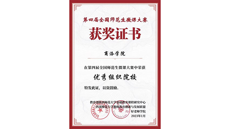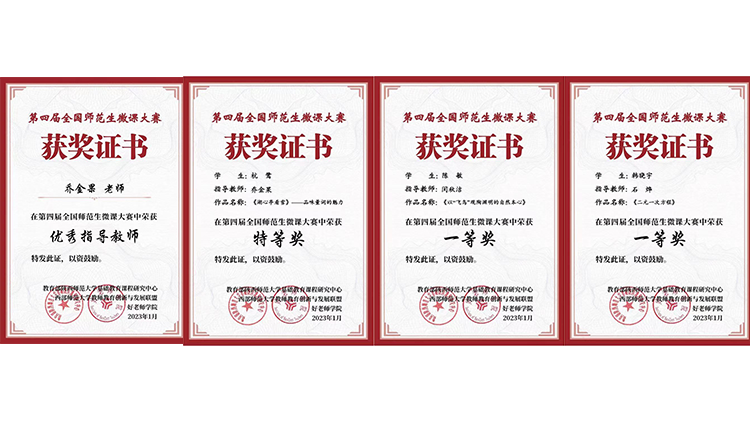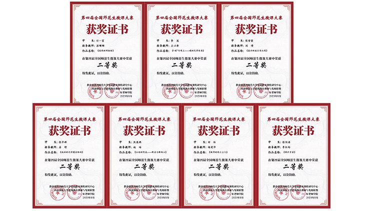近日,第四屆全國師范生微課大賽結(jié)果公布。我校師生獲得各類獎(jiǎng)項(xiàng)13項(xiàng),其中學(xué)生榮獲特等獎(jiǎng)1項(xiàng)、一等獎(jiǎng)2項(xiàng)、二等獎(jiǎng)8項(xiàng),人文學(xué)院喬金果老師榮獲優(yōu)秀指導(dǎo)教師,學(xué)校榮獲優(yōu)秀組織單位獎(jiǎng)。這是我校參與此項(xiàng)賽事以來首次榮獲優(yōu)秀組織獎(jiǎng),實(shí)現(xiàn)了學(xué)校集體獎(jiǎng)、學(xué)生獲獎(jiǎng)等級(jí)和獲獎(jiǎng)總數(shù)多項(xiàng)突破。