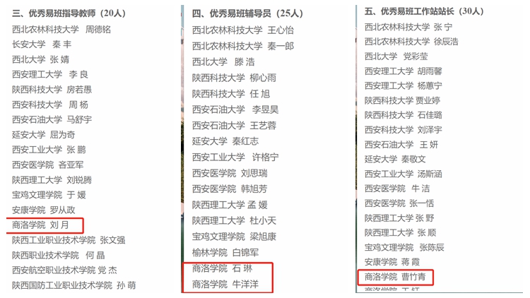 近日,陜西省高校易班發(fā)展中心發(fā)布了《關(guān)于2022年度陜西高校易班共建工作評優(yōu)結(jié)果的通報》。我校被評為2022年度“優(yōu)秀易班共建高?!?,學工部教師劉月被評為“優(yōu)秀易班指導老師”,經(jīng)管學院教師石琳、數(shù)計學院教師牛洋洋被評為“優(yōu)秀易班輔導員”,易班學生站長曹竹青、人文學院易班分站站長王鈺被評為“優(yōu)秀易班工作站站長”。劉月撰寫的《易班支持下的‘15213’心理健康教育模式探索與實踐》榮獲“優(yōu)秀易班共建案例”。我校實現(xiàn)2022年陜西高校易班共建評優(yōu)獲獎“大滿貫”。