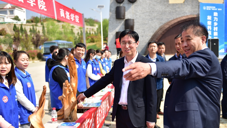 4月1日,以“凝聚科技力量,助力鄉(xiāng)村振興”為主題的商洛市第三十一屆“科技之春”宣傳月暨商洛學院“雙百工程”啟動儀式主場示范活動在丹鳳縣棣花鎮(zhèn)舉辦。商洛市委常委、副市長孫舉恒,我校副校長王新軍,商洛市科協(xié)主席黃恒林,丹鳳縣委副書記王小寧出席活動。我??萍继?、藝術學院相關負責人,45名志愿者、丹鳳縣25家成員單位以及500余名群眾參加活動。