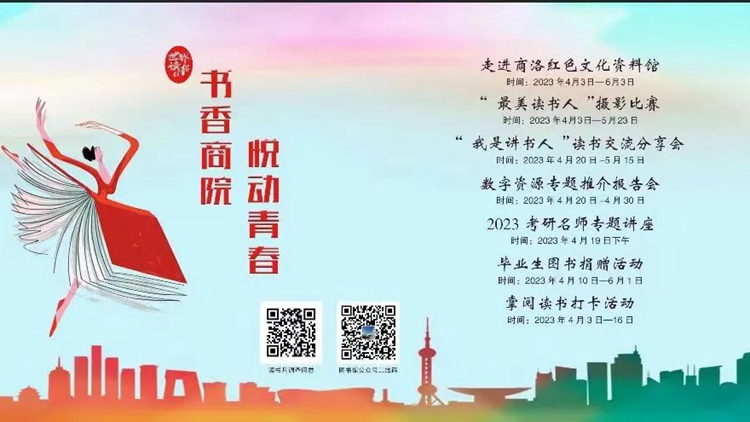 人間最美四月天,正是讀書好時節(jié)。為了讓更多師生讀者參與到閱讀中來,形成愛讀書、善讀書、讀好書的深厚氛圍,近日,圖書館組織開展的2023年“書香商院 悅動青春”讀書月活動正式拉開帷幕。
