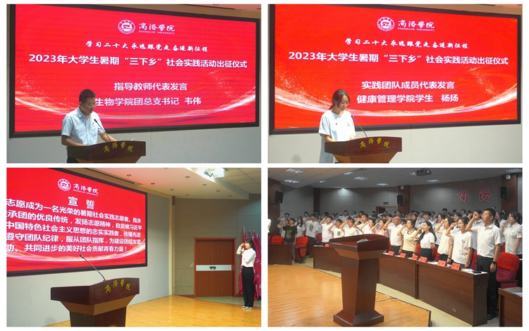 2023年我校聚焦理論宣講、鄉(xiāng)村振興、黨史學習教育、民族團結(jié)融合、“七彩假期”志愿服務、生態(tài)環(huán)境保護、健康中國等主題,共組建99支社會實踐隊到省內(nèi)外開展實踐活動。出征儀式后,他們將代表商院青年學子奔赴多個地區(qū),在豐富多彩的社會實踐活動中秉持愛國情懷,弘揚奉獻精神,奏響青春之歌。
